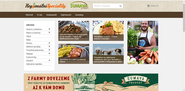 In the Czech Republic, a pilot e-shop with regional products was set up in south-western Bohemia to address this issue, which, in addition to the products of individual local farmers, also offers a range of other information about the area. The authors of the e-shop Úhlava, o.p.s., WirelessInfo and Šumavaprodukt, s.r.o. when establishing LivingLab Pošumaví, set the introduction of a digital platform to support retail sales of regional products as one of their important tasks.