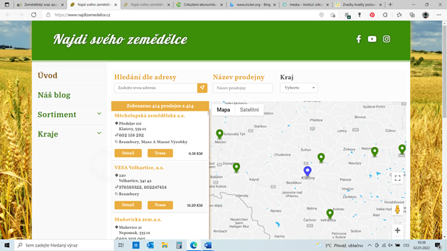Gradually, other important goals were achieved, which logically appeared by connecting individual partners in the “living laboratory” – LivingLab. As part of the digital platform, information on individual suppliers, both agricultural enterprises and smaller food companies, is gradually being supplemented, expanded and updated. In the future, cooperation with local craftsmen and tradesmen is also planned. At the same time, information about tourist attractions in Šumava and Pošumaví is gradually being added to the atlas, which is part of the e-shop.